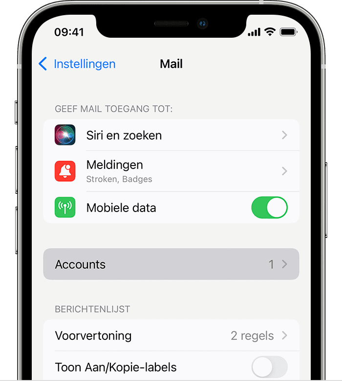 1. Ga naar 'Instellingen' > 'Mail' en tik op 'Accounts'.