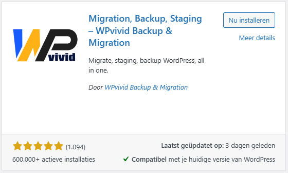 5 - Zoek de plugin "Migration, Backup, Staging - WPvivid Backup & Migration"